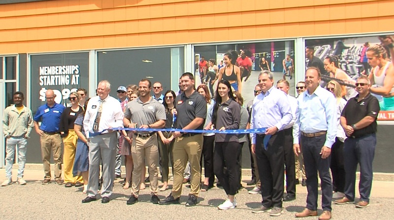 Crunch Fitness and the Fargo Moorhead West Fargo Chamber of Commerce perform a ribbon-cutting event